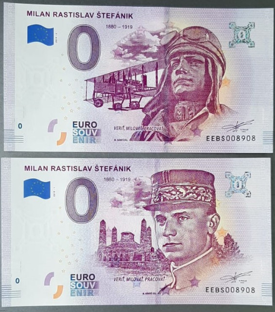 Dve edície 0 EURO s rovnakým číslom MILAN RASTISLAV ŠTEFÁNIK