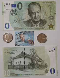 ALEXANDER DUBČEK MEMO EURO + 2 Eurová minca Dubček + poštová známka A.Dubček